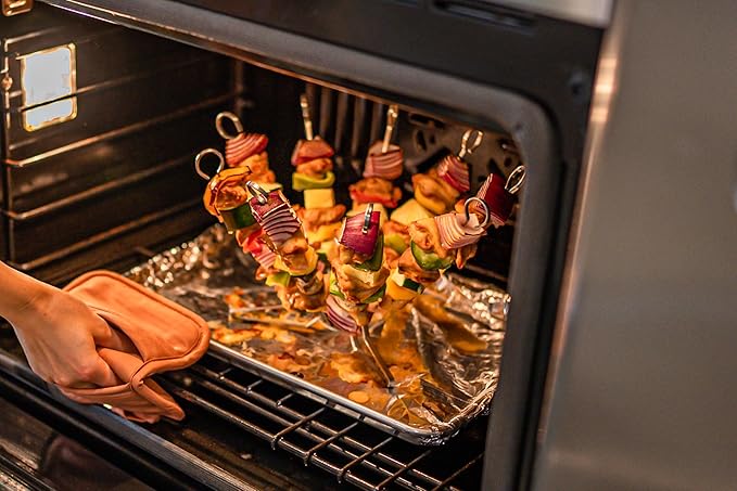 • HOOK HANDLE FOR EASY GRIP & SAFE-HANDLING: Designed for comfort and safety, the metal skewers feature hooked handles that provide a secure grip while keeping your hands away from the heat. They are designed for effortless use, ensuring a comfortable grilling experience every time.