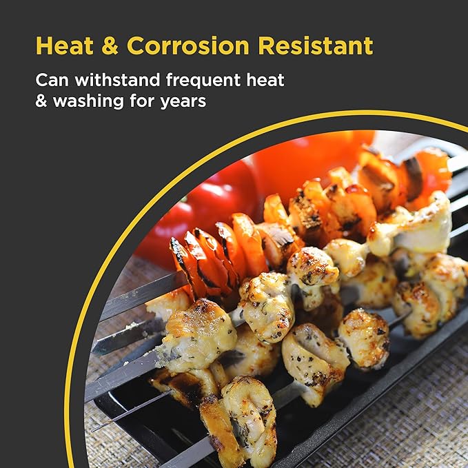 • STAINLESS STEEL BBQ SKEWERS FOR DURABILITY: O-Yaki’s metal skewers are made from durable stainless steel, ensuring they are resistant to rust and can withstand repeated use. These sturdy BBQ skewers won’t bend or break, providing a consistent grilling experience for meats, veggies, seafood, and more.