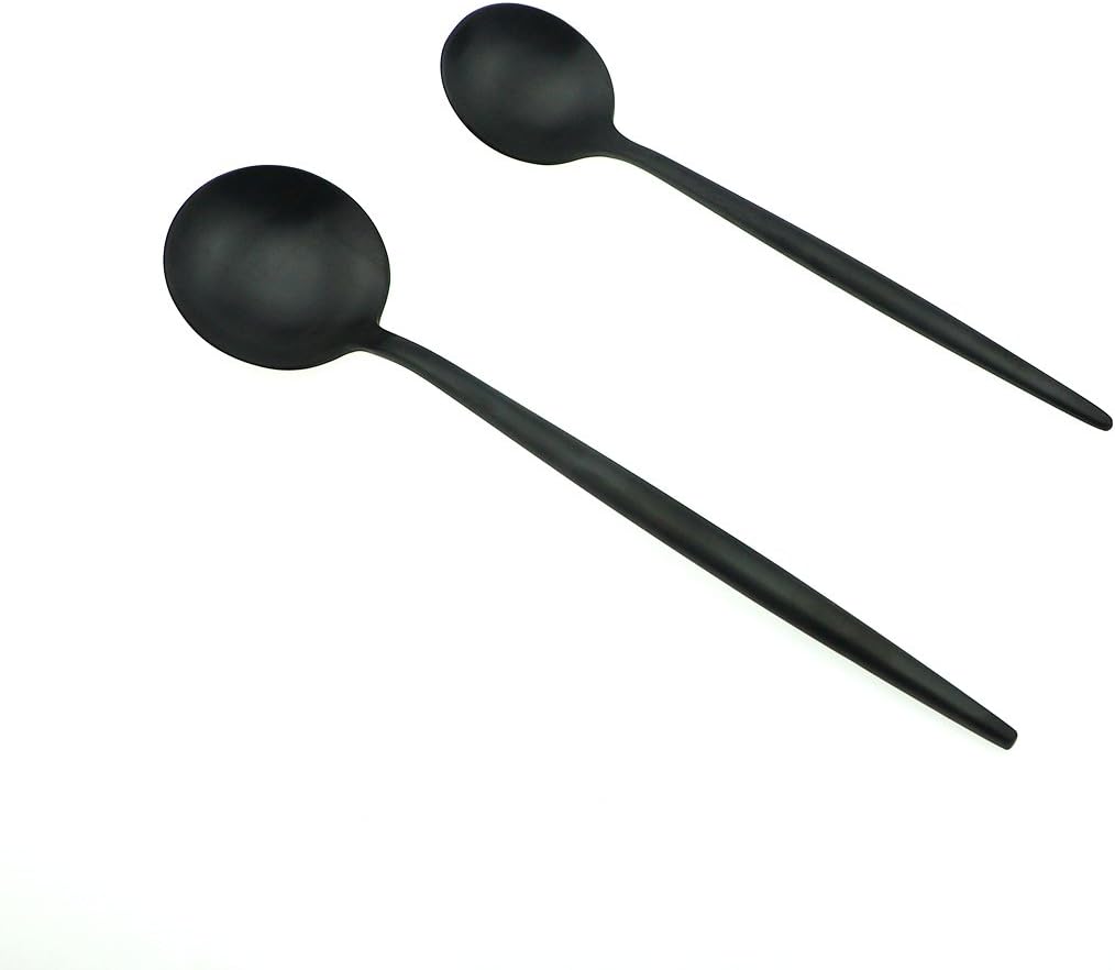 JASHII 18/10 Stainless Steel 5-Piece Matte Black Flatware Set,Dinner Knife Fork Salad Fork Dessert Spoon, Service for 1, Luxury Silverware Cutlery Utensil Sets