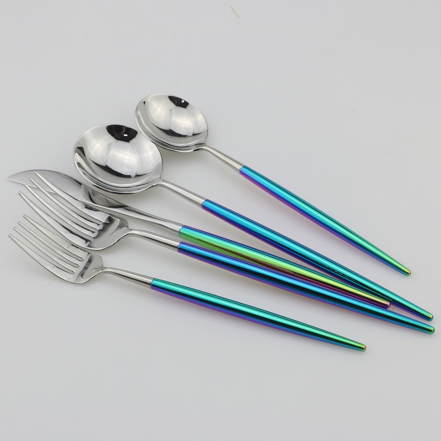 20-Piece Coloful Rainbow Handle Silver Flatware Set, Mirror 18/10 Stainless Steel, Service for 4