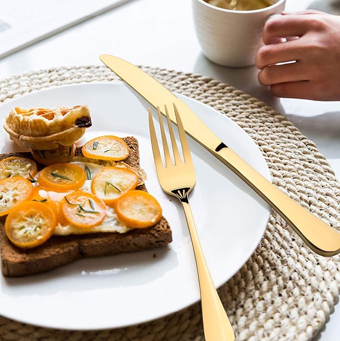 • Classic look, bright gold mirror finish, simple but elegant enough to match your high taste tableware, proper weight to provide good balance grip