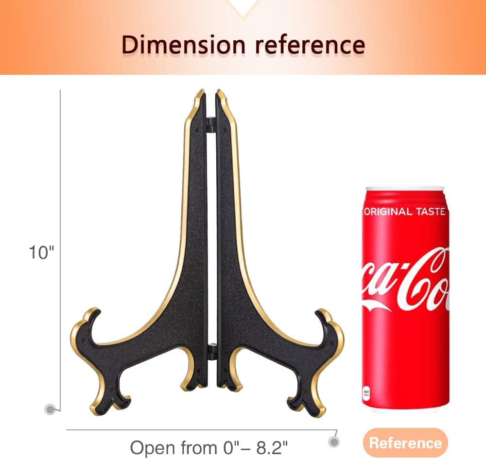 Artliving 10" Decorative Plate Stand Holder Plastic Picture Easel Display Stand Picture Frame Stand Black Gold