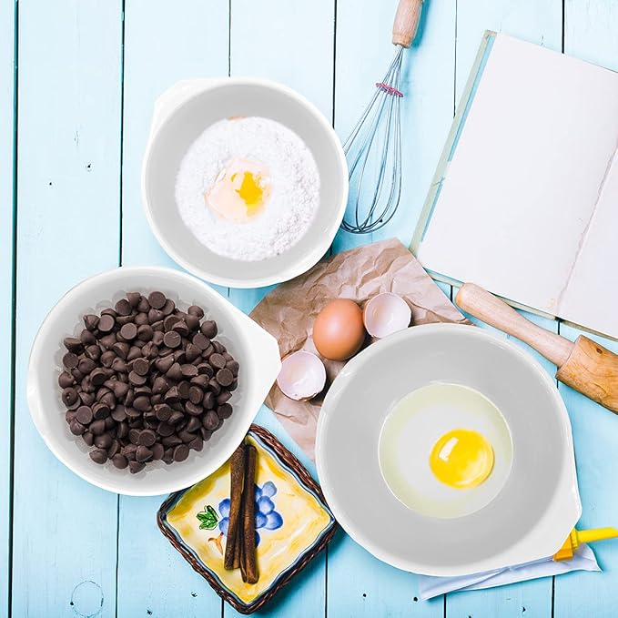 • EMBEDDED POUR SPOUTS – Each bowl is designed with a pour spout on one end and a lip on the other end for easy handling. Perfect for trained chefs, bakers and beginners alike, these bowls make it easy to mix, stir and pour batters or sauces.