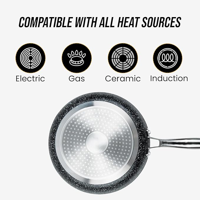 • Modern Design with Ergonomic SS Handle: surface has the appearance of Black Grey marble in interior and exterior; an ergonomically designed stainless steel handle for ease and Comfort while cooking, as well as a helper handle for easy lifting; a beautiful addition to your kitchen; optimal size for day-to-day cooking.