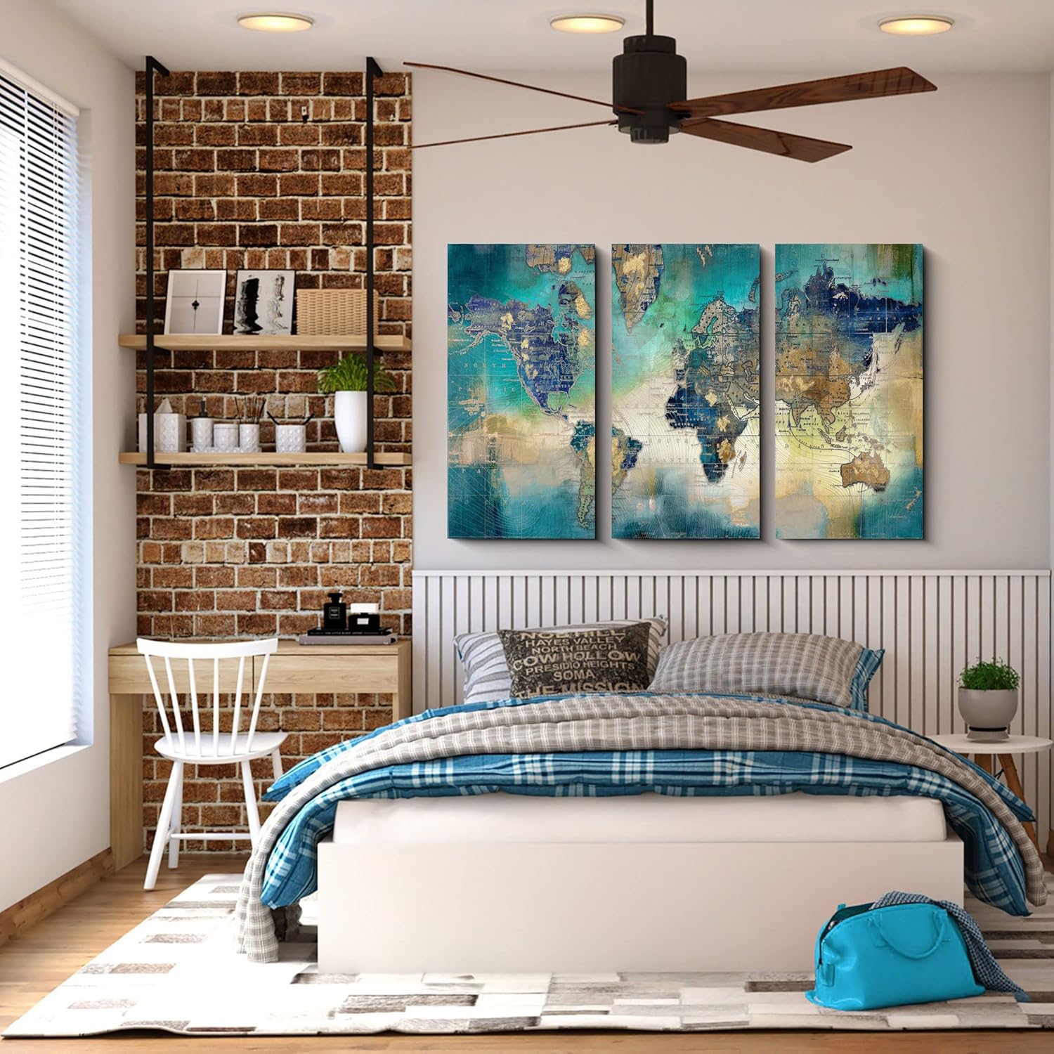 Pogusmavi Canvas Wall Art for Living Room - World Map Wall Decor - Large Wall Art for Bedroom - Office Artwork - Map Wall Art 16"x32" 3 Piece Canvas Wall Art