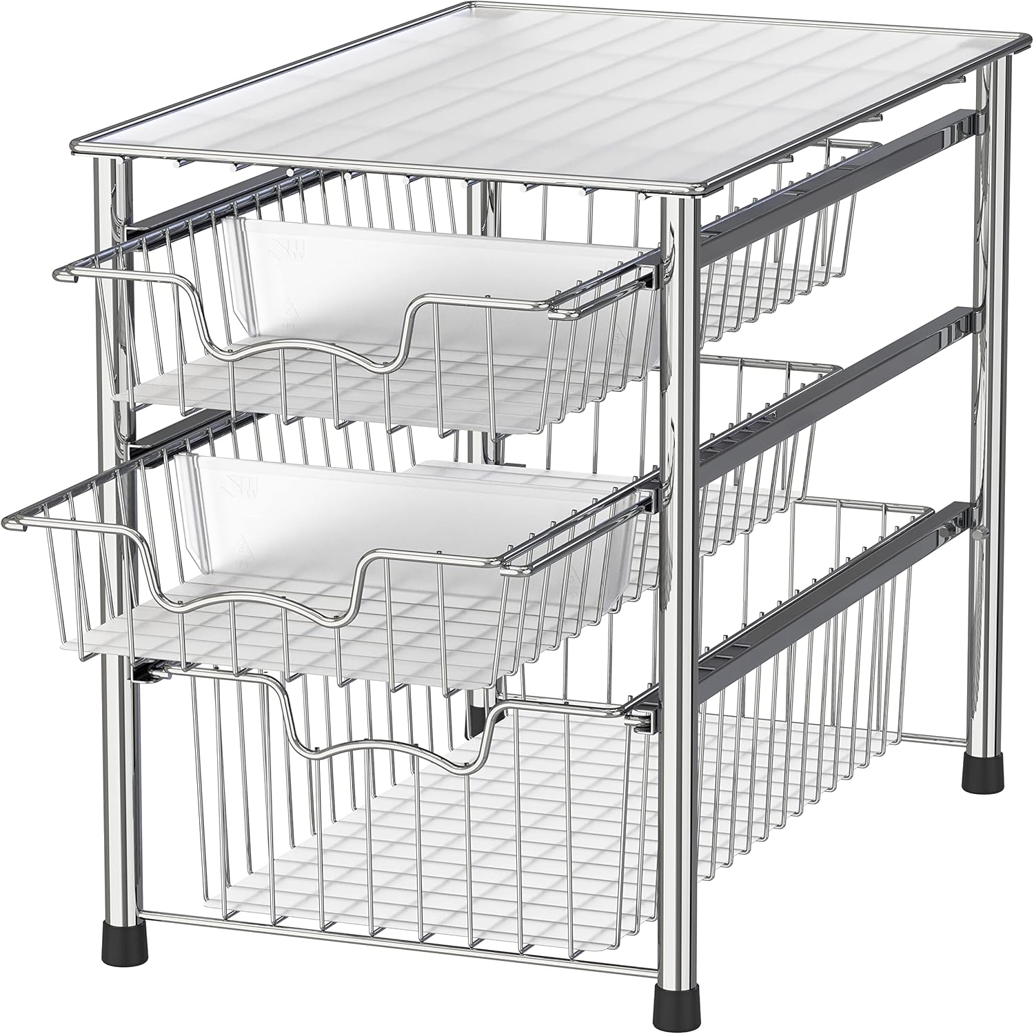 Simple Houseware Stackable 3 Tier Sliding Basket Organizer Drawer, Chrome