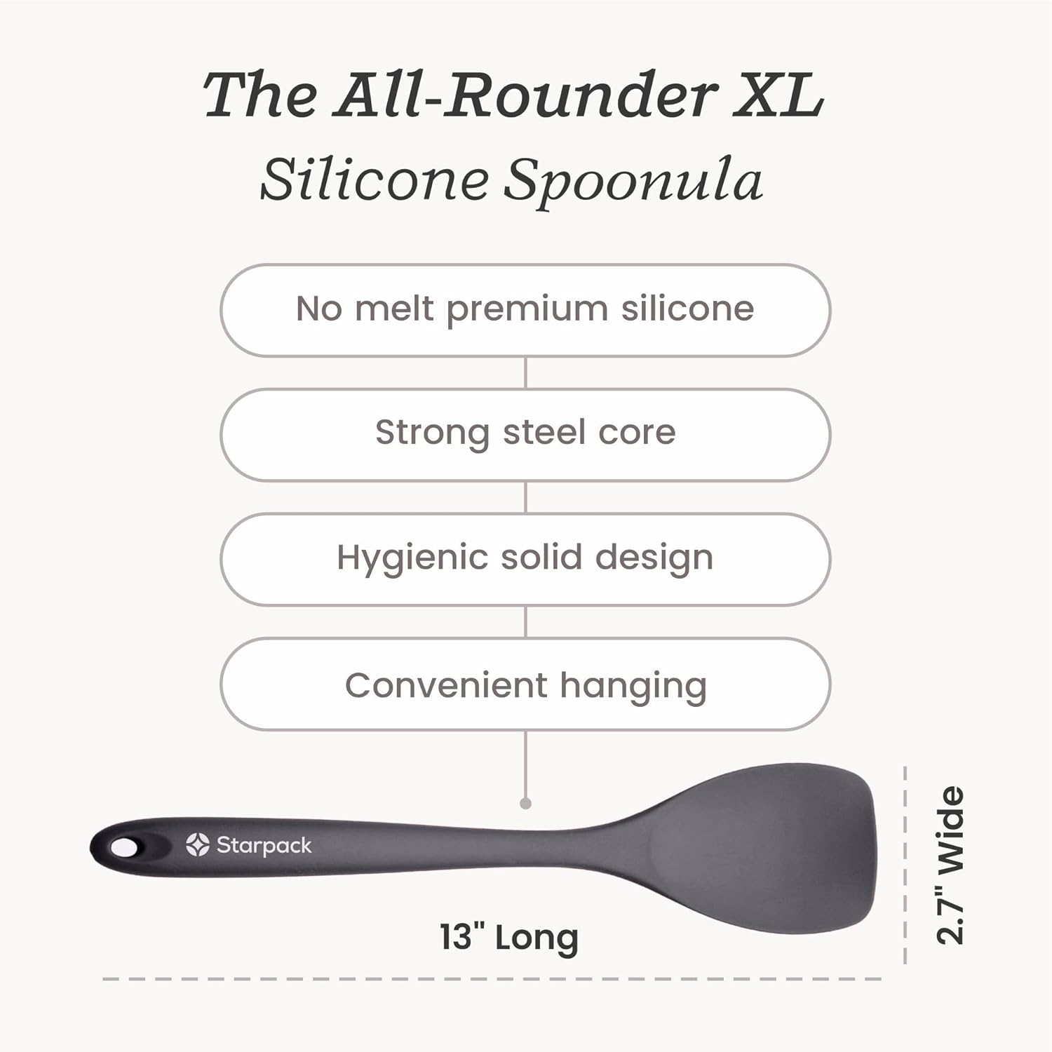 Starpack 'The All Rounder' XL Premium Silicone Spoonula - Heat Resistant to 600F - Best Kitchen Spatula Spoon for Cooking