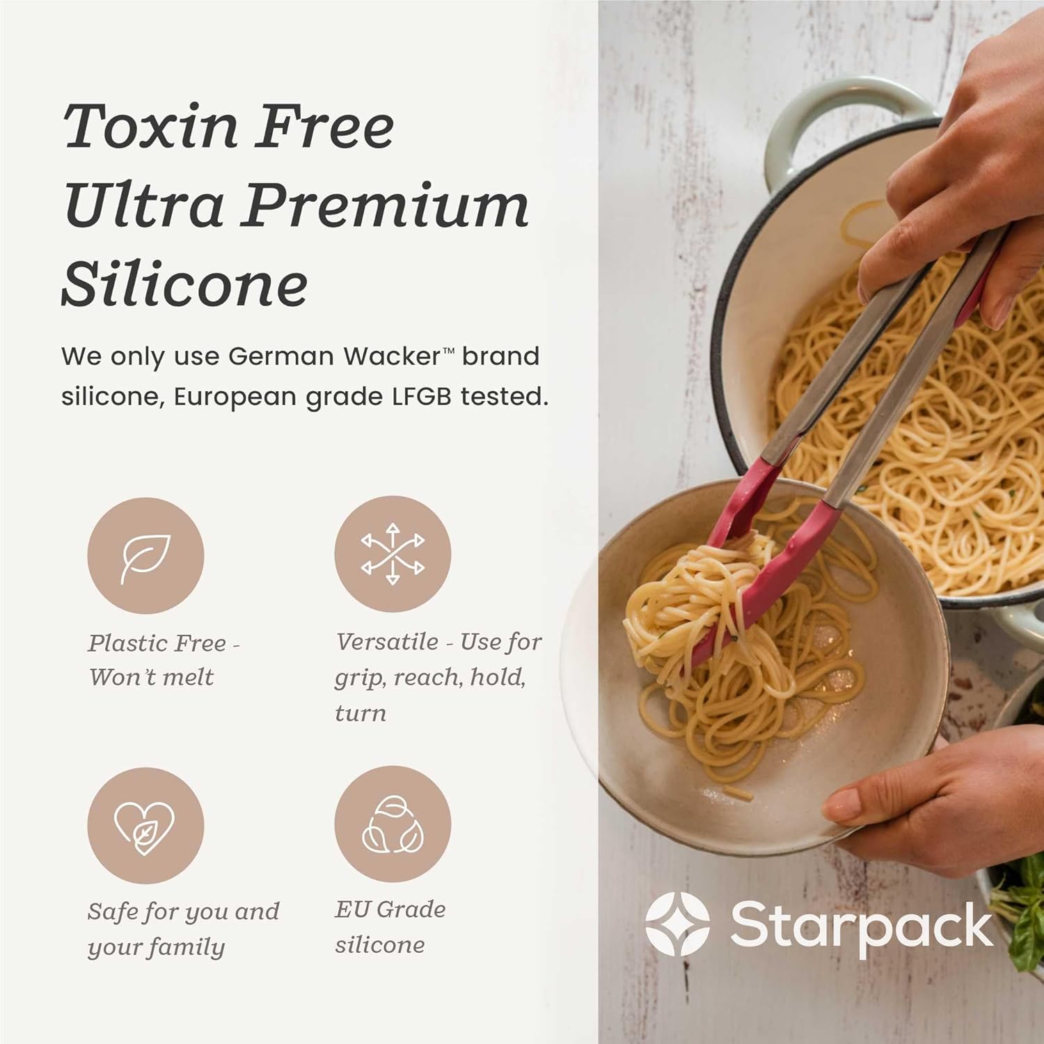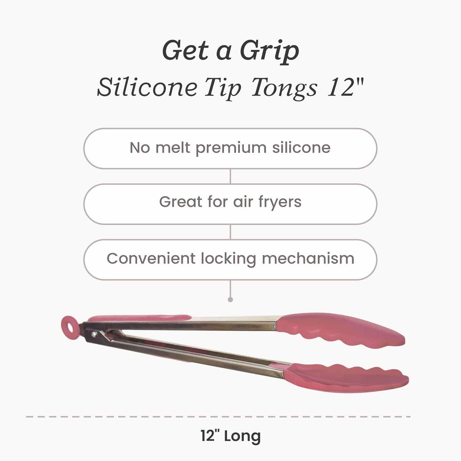Starpack 'Get a Grip' Silicone Kitchen Tongs for Cooking 12 Inch - BBQ Tongs for Grill Heat Resistant to 600°F - Stainless Steel Tongs with Non Stick Tips - Silicone Tongs for Serving Food