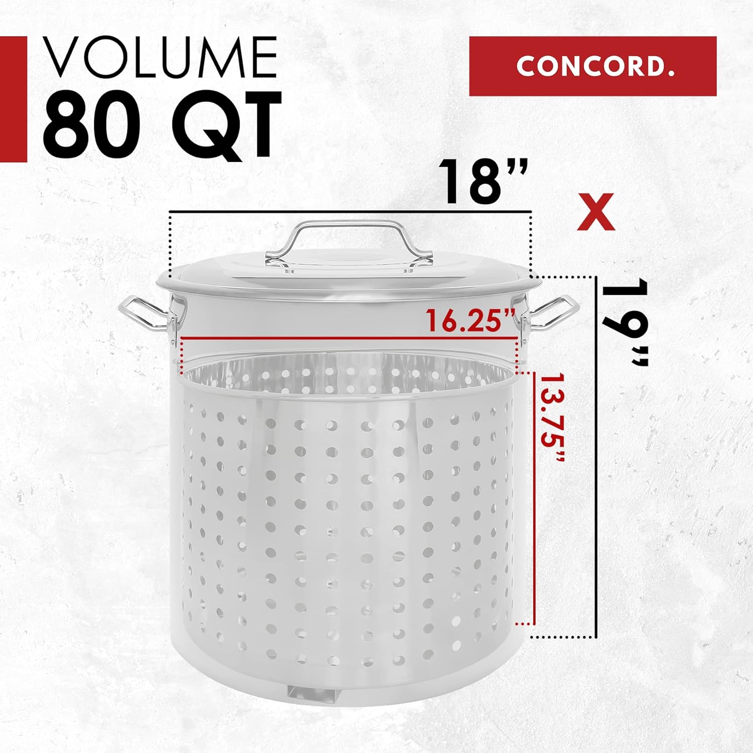 CONCORD Stainless Steel Stock Pot w/Steamer Basket. Cookware great for boiling and steaming (80 Quart)