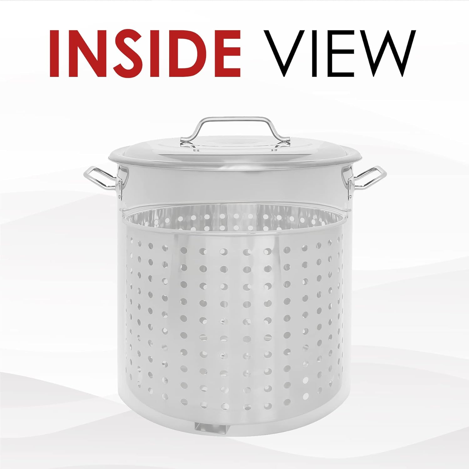 CONCORD Stainless Steel Stock Pot w/Steamer Basket. Cookware great for boiling and steaming (60 Quart)