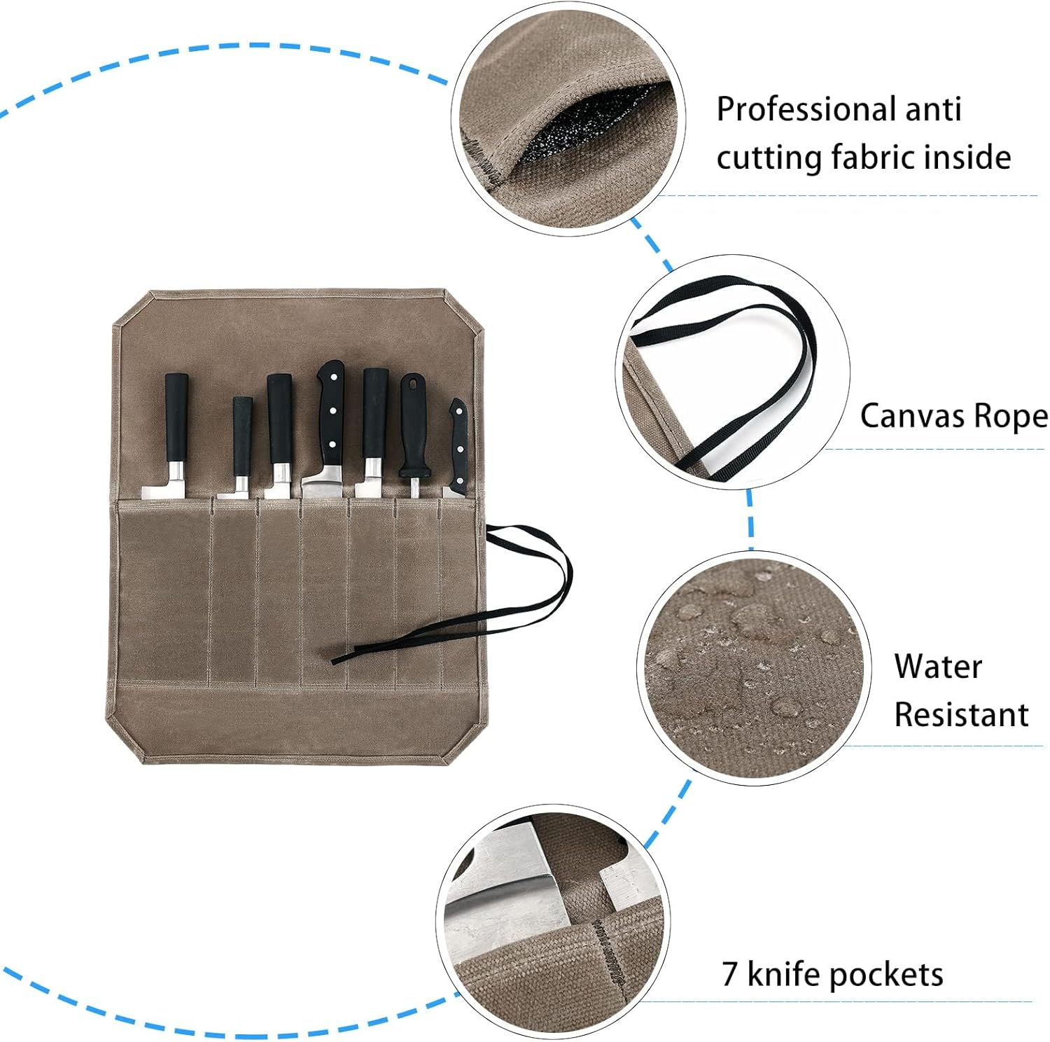 • 💖Convenient Accessibility Knife Roll :7 knife sleeves holds 7 kitchen knives and accessories, such as paring, carving, ceramic, scissors, and other chef utensils or tools. Perfect valentines day gifts for him , cool gadgets for men, women, dad, husband, chef, carpenters. Chef tools for men.