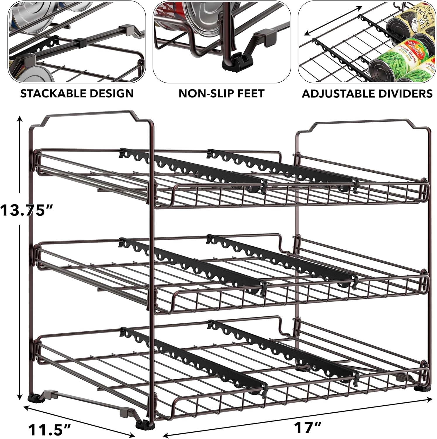 Simple Houseware Stackable Can Organizer Rack for Pantry/Cabinet – 11.5" D x 17" W x 13.75" H, Holds 36 Cans, 3-Tier Can Food Storage Dispenser, Bronze