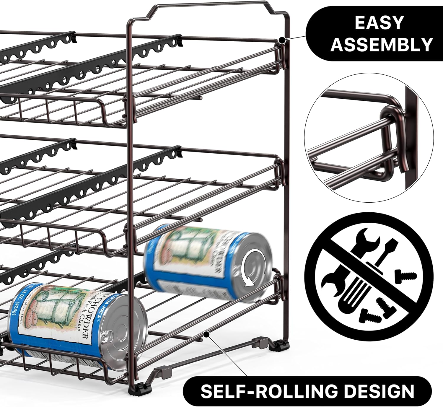 • Practical, Spacious Storage: Holds up to 36 cans with three roomy tiers; perfect for organizing canned goods, soda cans, or mason jars in one compact unit