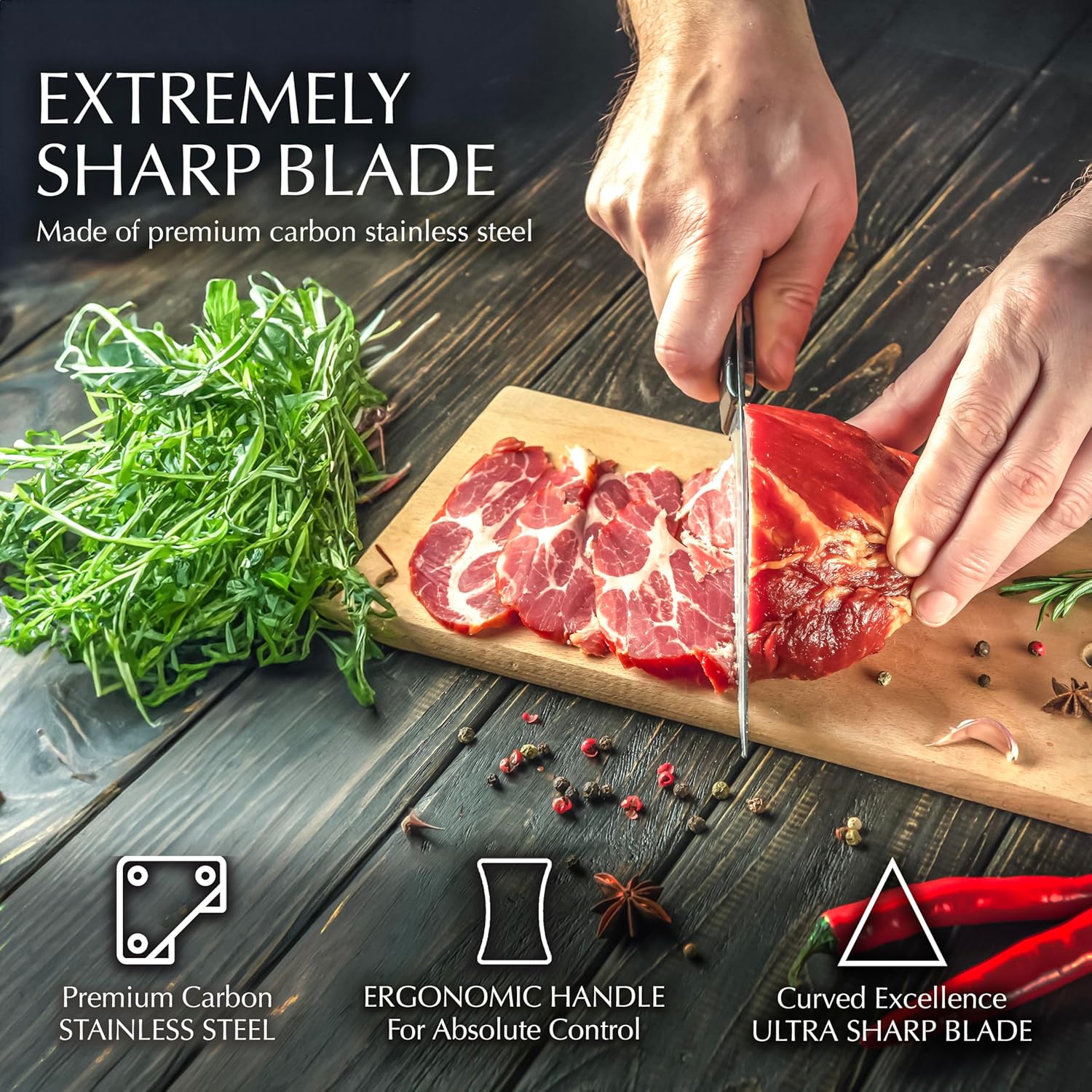 • Precision Cutting Knives: This chef knife set includes ultra-sharp forged stainless steel blades. The knife set stainless steel delivers clean cuts with high-carbon kitchen knife precision.