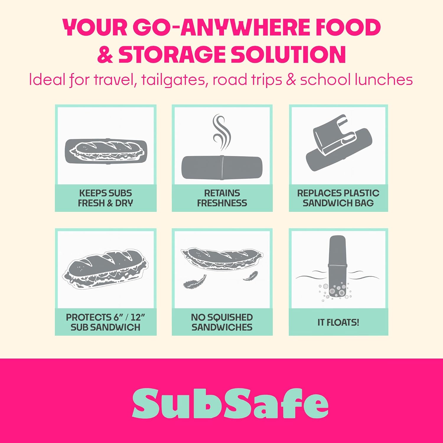 • No More Soggy Subs - As seen on Shark Tank, SubSafe’s airtight, 3-piece twist-lock design keeps sandwiches fresh, dry, and crush-free. Engineered to fit both 6” and 12” subs, you can enjoy half now, half later. At 12.5 x 4 inches, it’s the perfect snack box container for subs, snacks, and more.