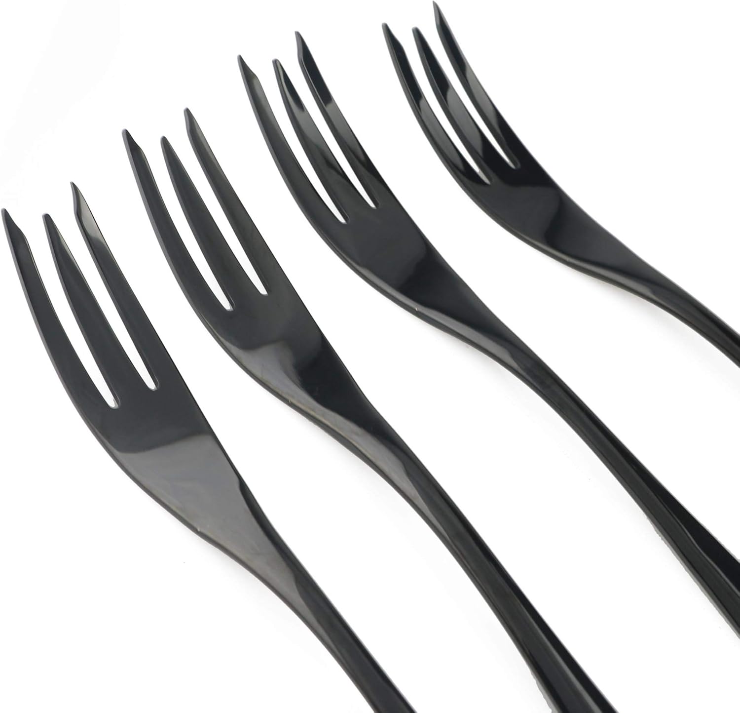 4-Pieces 18/10 Stainless Steel Seafood Cocktail Appetizer Fish Fork Set, Mirror Polishing Black
