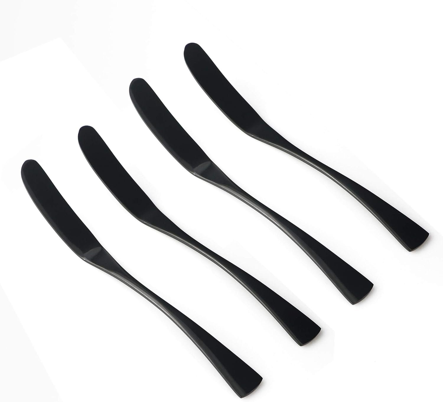 4-Pieces 18/10 Stainless Steel Butter Knife Set, Butter Spreader, Breakfast Spreads,Cheese and Condiments, Mirror Polishing Black