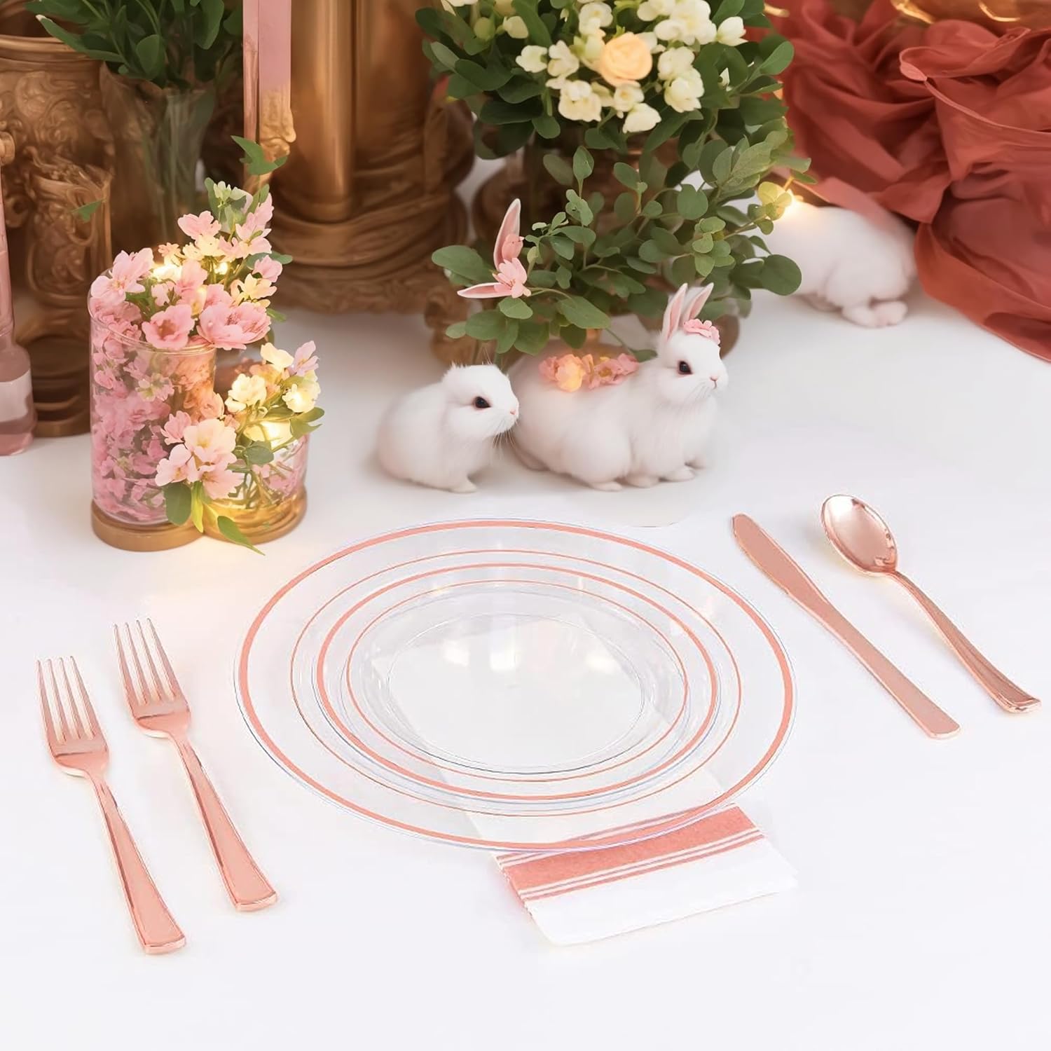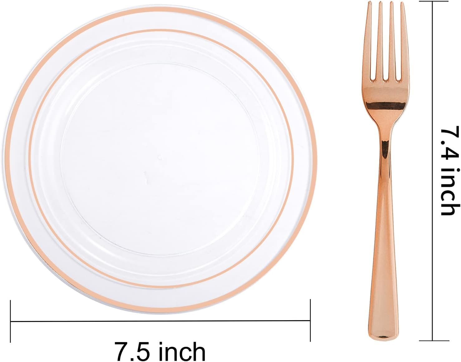 • Great Value Set: Each set includes 72 rose gold plastic plates (7.5 inches) and 72 matching plastic forks (7.4 inches). we offer prompt customer support to resolve any issues within 12 hours.