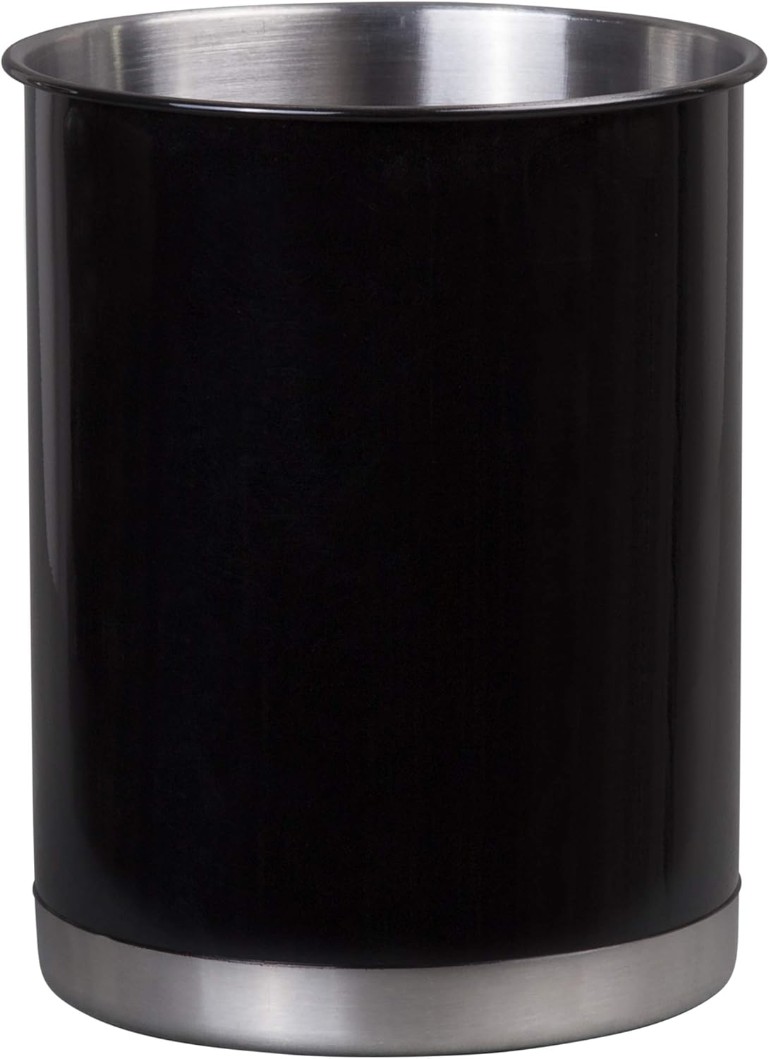 Creative Home Stainless Steel Utensil Holder– 6.3" Large Cooking Tool Organizer for Kitchen Decor and Countertop Storage, Stable Anti-Tip Design, Durable Powder-Coated Finish, Black