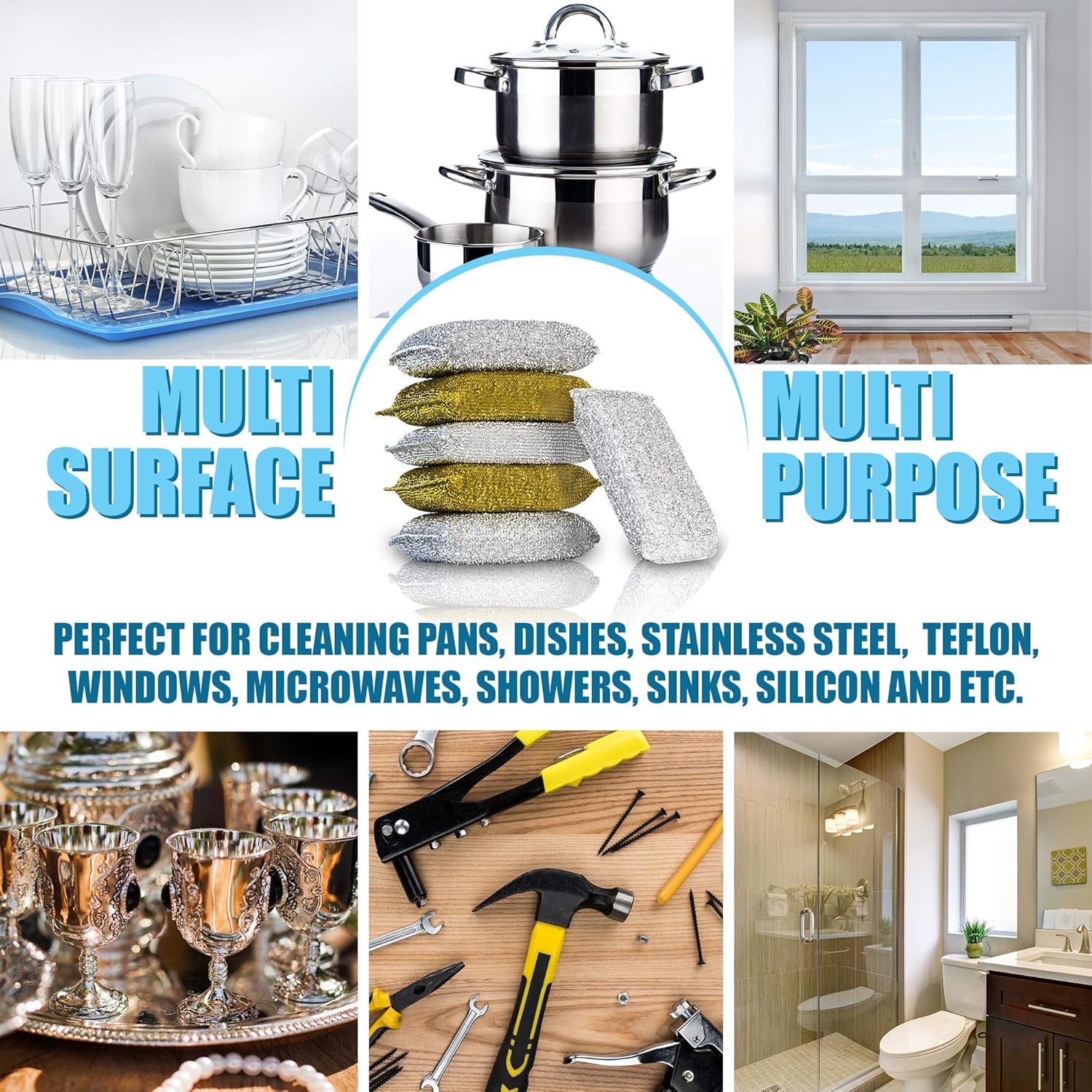 • DURABLE LONG LASTING MATERIALS: Unlike metal scrub sponges that rust easily, these polyester and polyurethane cleaner sponges will stain in excellent condition for up to 6 months (1000 uses). Each set includes 12 scrubber pads in silver and gold, so you won’t have to buy a new pack anytime soon!
