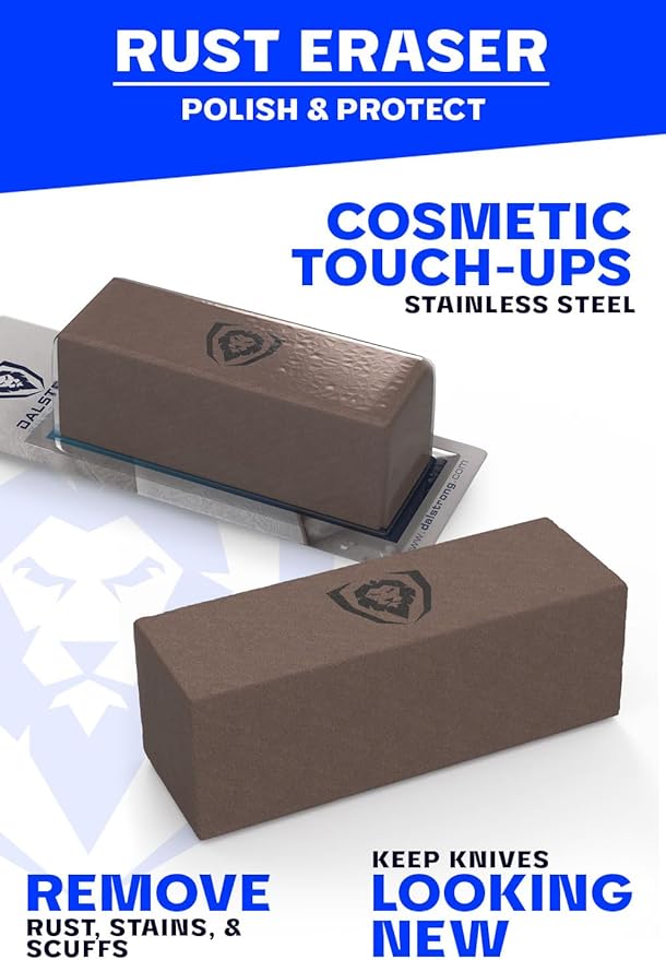 • The Dalstrong Rust Eraser: Trusted Dalstrong craftsmanship and design, engineered with the absolute best materials available. Protect your investment by ensuring proper maintenance of your knives and bladed tools with the Dalstrong Rust Eraser. Peak performance never looked so good to you or your wallet.
