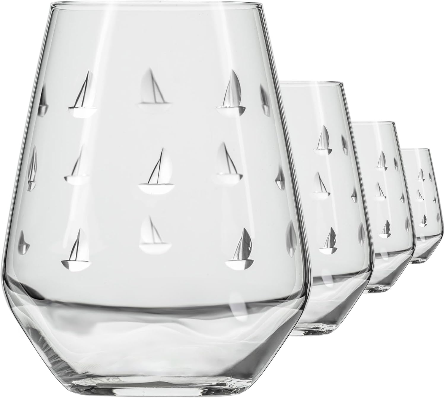 Rolf Glass Sailing Stemless Wine Tumbler 18 ounce | Stemless Wine Glasses Set of 4 | Lead-Free Crystal Glass | Etched Tumbler Glasses | Proudly Made in the USA