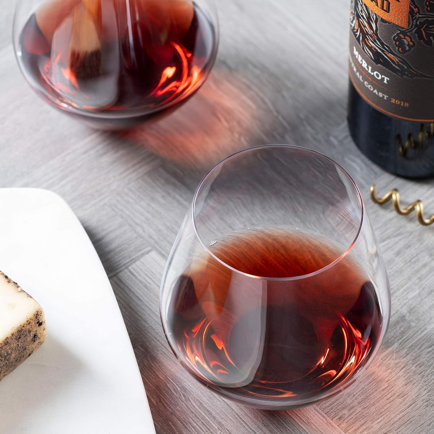 Godinger Wine Glasses, Stemless Red Wine Glasses, Wine Drinking Glasses, Stemless Wine Glass - 17oz, Set of 4 - Made in Europe
