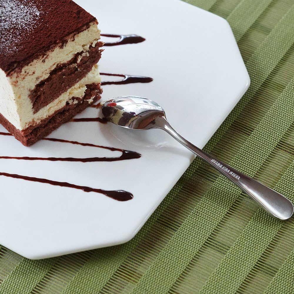 • Conform to ergonomic curve design and great balance of weight makes the dessert spoon easy to hold. Simple appearance without excess decoration, these small spoons have a timeless classic look to fit any kitchen flatware and different occasion, such as restaurant, hotel, party, event.