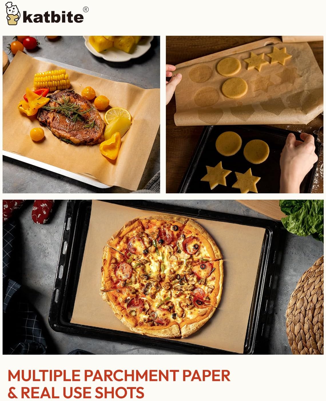 • Non-Stick & Easy To Clean - Do you love baking but hate cleaning up? Katbite parchment paper unbleached for baking makes it possible and even works great! Food can be easily slide off from the baking tray and you just need to remove the paper and throw it away after baking.