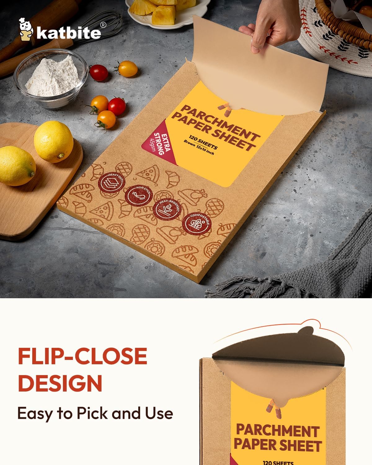 Katbite Unbleached Parchment Paper Baking Sheets, 120Pcs 12x16 Inch Precut Parchment Paper for Baking, Heavy Duty & Non-stick, Half Sheet Paper for Baking, Cooking, Steaming, Oven Paper
