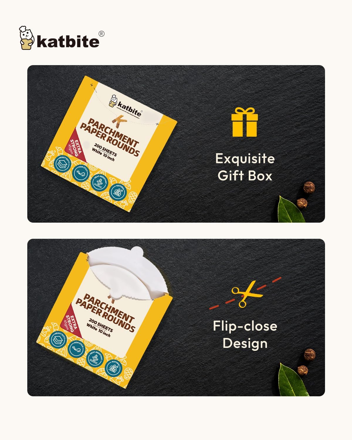 Katbite 10 Inch Parchment Paper Rounds, 400Pcs Round Parchment Paper for Cake Baking, Air Fryer Liners, Freezing, Tortilla Press(2 Pack of 200Pcs)