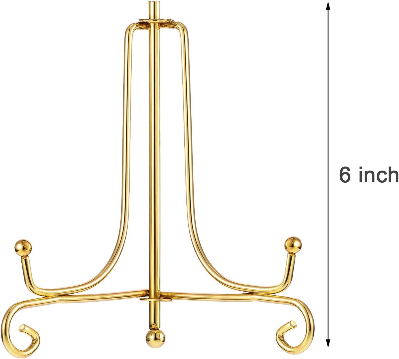 Tatuo 4 Packs Plate Stands for Display 6 Inch Plate Display Stand, Iron Easel Picture Frame Holder, Decorative Photo Holder Stand for Home Decoration (Gold, 6 Inch)