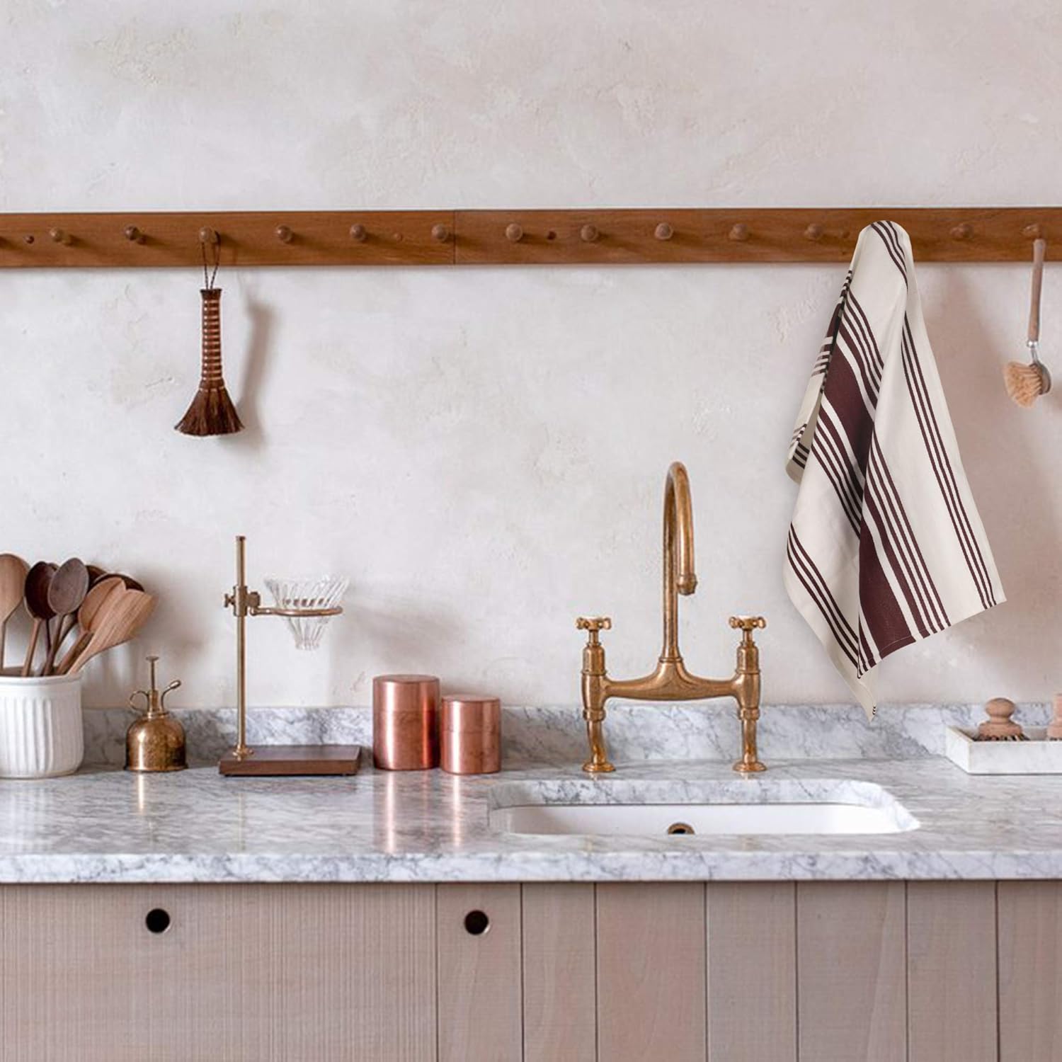 Urban Villa Kitchen Towels 100% Cotton Pack of 6, Highly Absorbent Quick Drying Super Soft Premium Dish Towels for Kitchen with Hanging Loop Hand & Tea Towels - 20x30 Inch, (Wine & White, Striped)