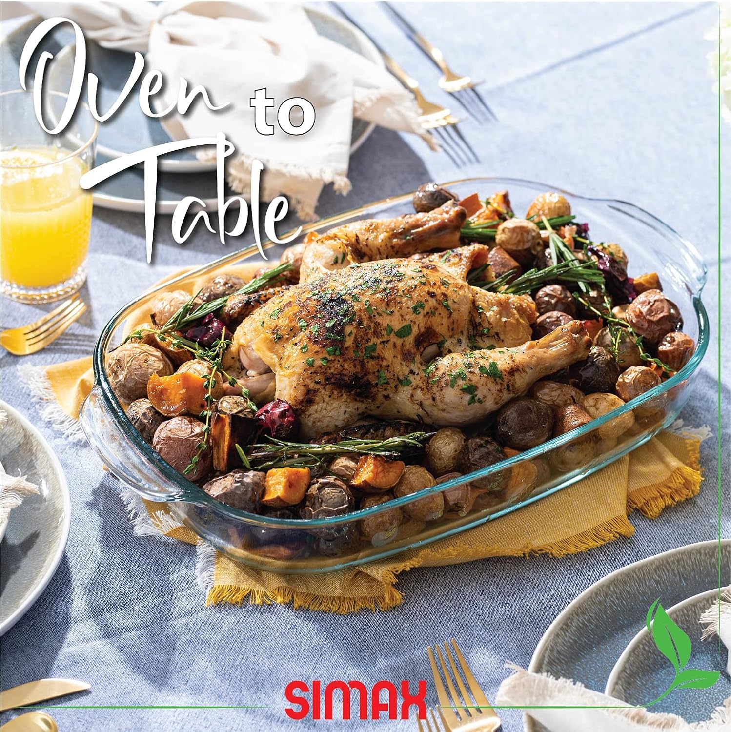 Simax Casserole Dish For Oven, 8 Quart Glass Baking Dish With High Lid Set, Microwave, Oven, and Dishwasher Safe Cookware, Borosilicate Glassware, Large Baking Dish