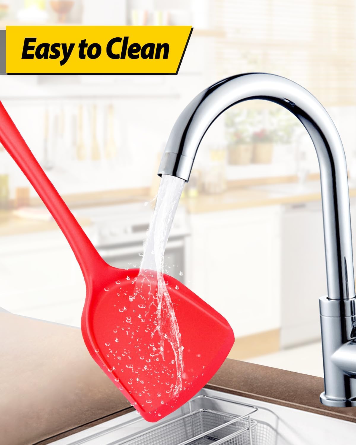Pack of 2 Silicone Wok Spatula, Non-Stick, Heat Resistant, Easy to Clean and Dishwasher Safe, Seamless Kitchen Utensil for Cooking, Baking, Stir-Fry (Red)