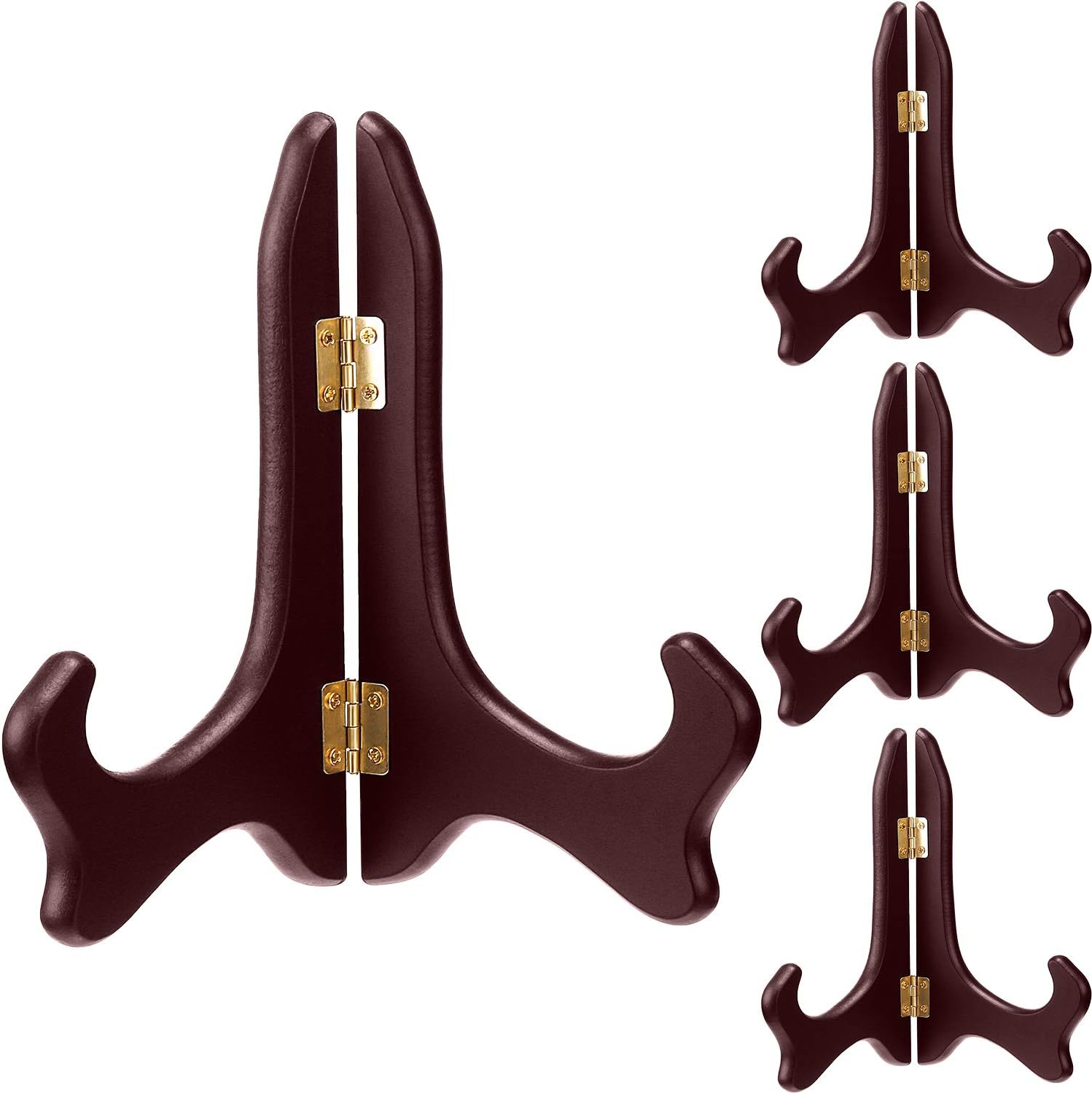 Tatuo 4 Packs Wooden Display Stand Decorative Plate Stands for Display Picture Frame Holder Easels(Red,7 Inch)