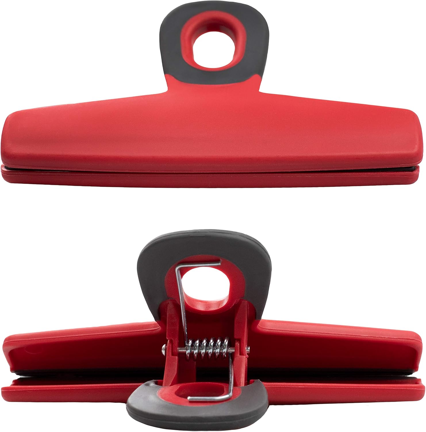 • Set includes 4 red rubber bag clips that are 5 inches wide - the great size clip for extra big bags of chips and food.
