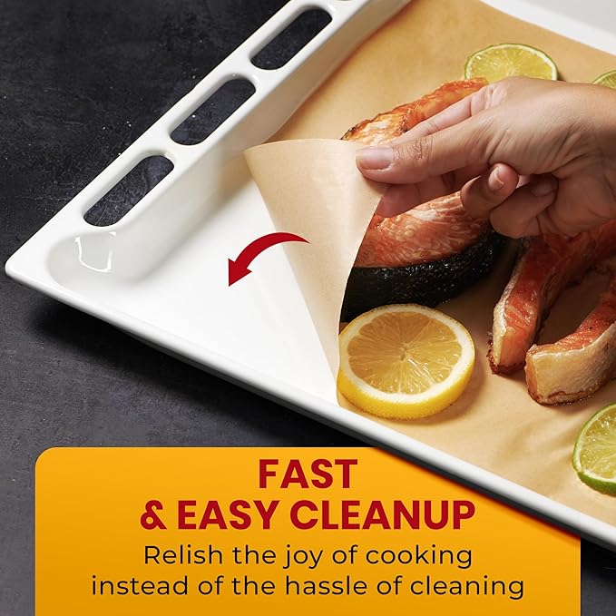 • NATURAL & SAFE – 100% wood pulp with silicone coating. Healthier than Quilon sheets, which contain harmful Chromium. Baker’s Signature isn't chemically bleached. Simplify your baking cleanup. Our 12 x 16 sheets fit most trays, ensuring a mess-free experience.