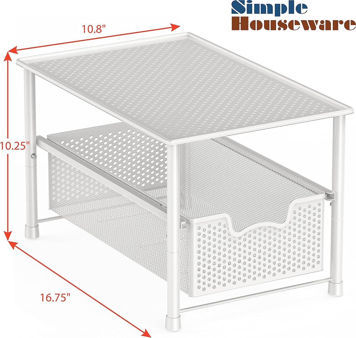 Simple Houseware Stackable Under Sink Cabinet Sliding Basket Organizer Drawer, White