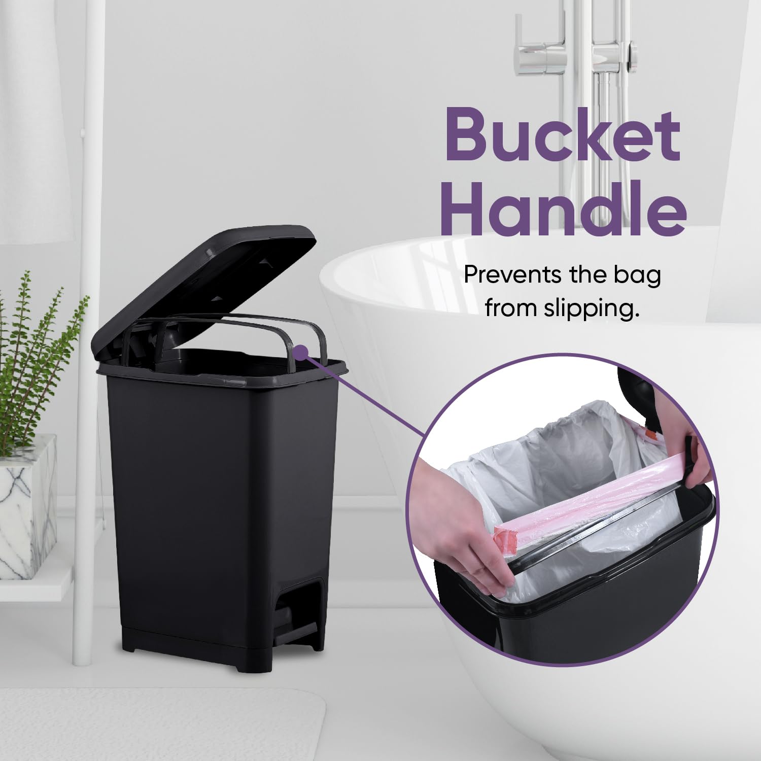 • EASY TO CLEAN - Get rid of trash quickly and easily with our step-on trash can. It is ergonomically designed for portability, which makes it perfect for your kitchen and bathroom.