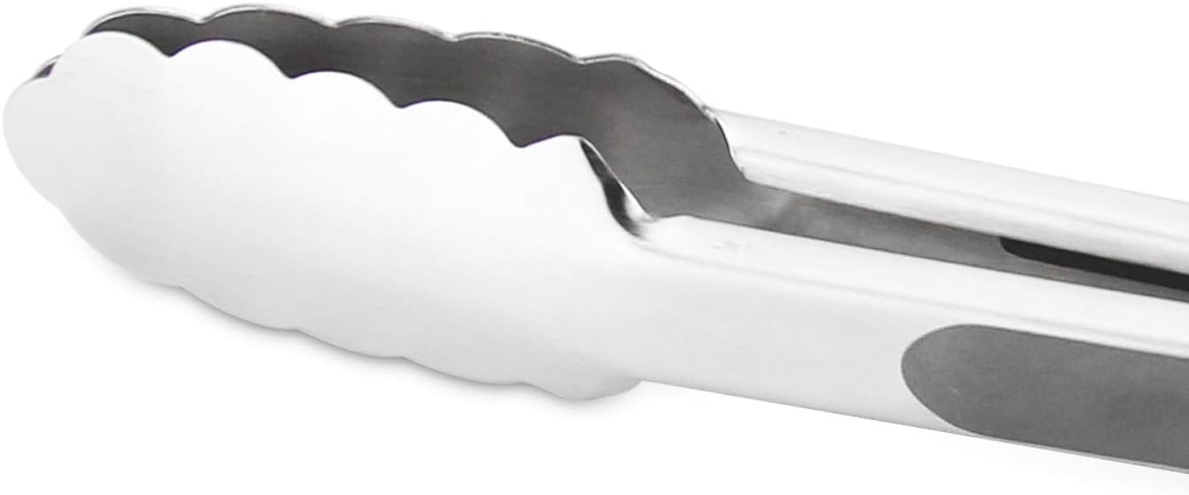 304 Stainless Steel Kitchen Cooking Tongs, 9" and 12" Set of 2 Sturdy Grilling Barbeque Brushed Locking Food Tongs with Ergonomic Grip, Grey