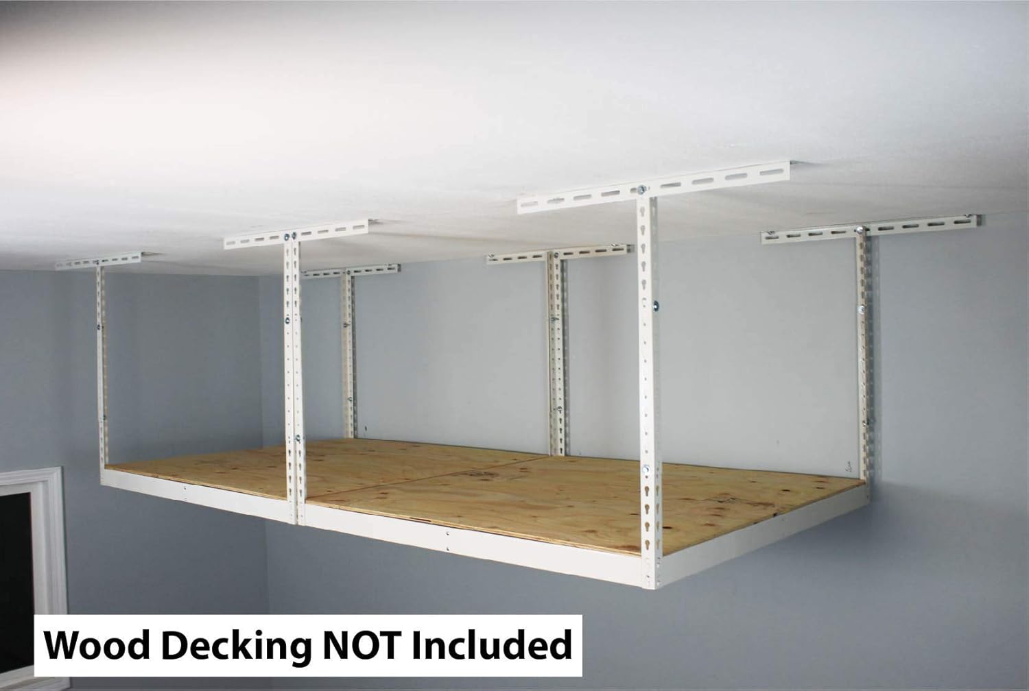 • IMPORTANT REMINDER: Our Overhead garage storage rack frame kit DOES NOT come with wire decks. Decks are NOT included. We recommend that a 3/8" thick plywood be used as adequate decking material for this garage ceiling storage rack to maximize it's storage weight capabilities.
