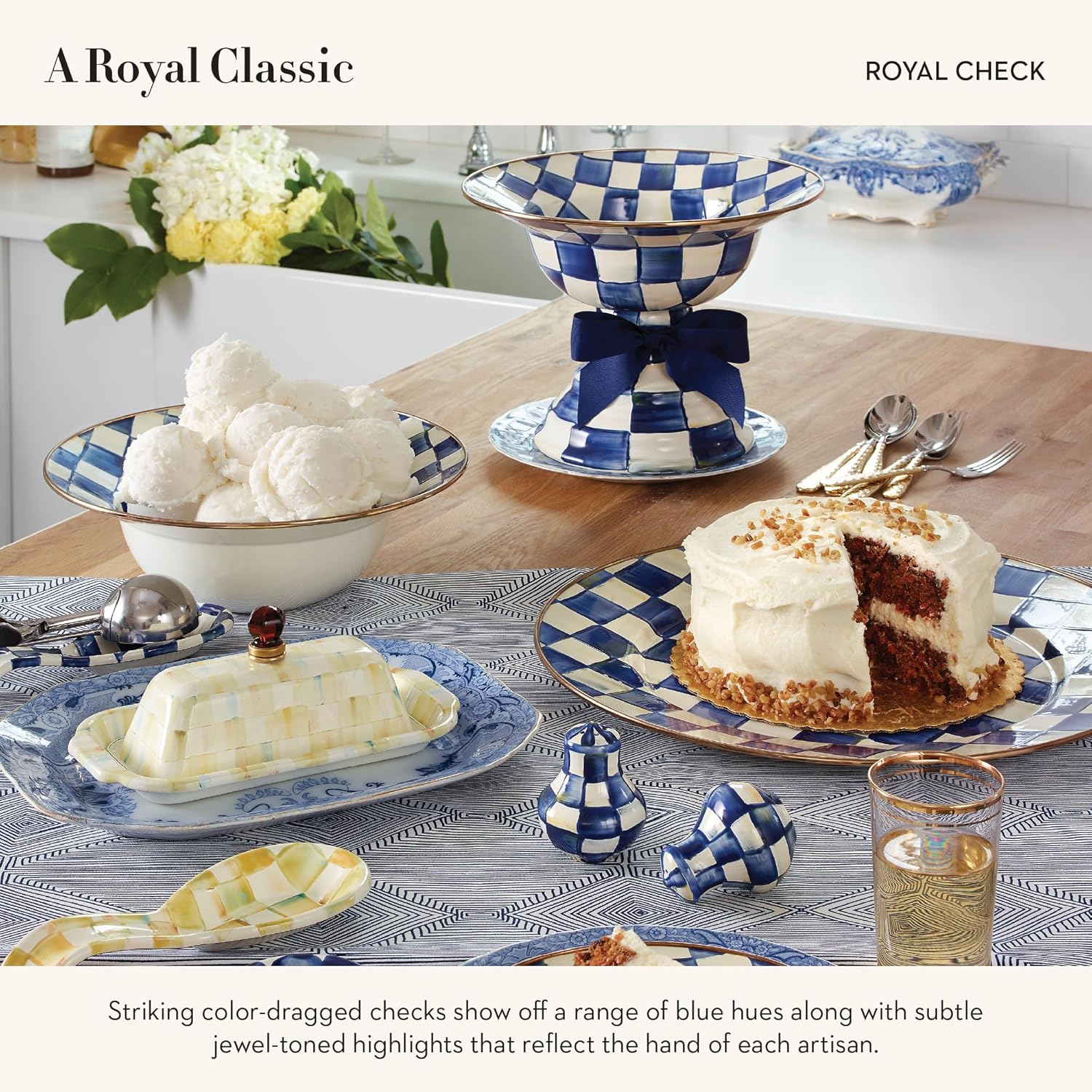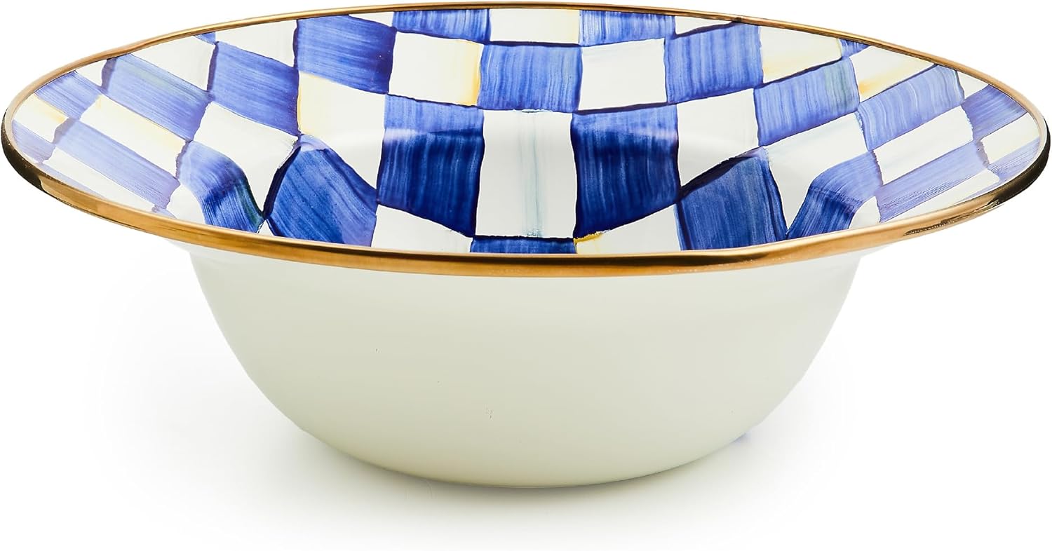 MACKENZIE-CHILDS Enamel Serving Bowl, Enamel Serveware Bowl, 12 Inches, Blue-and-White Royal Check