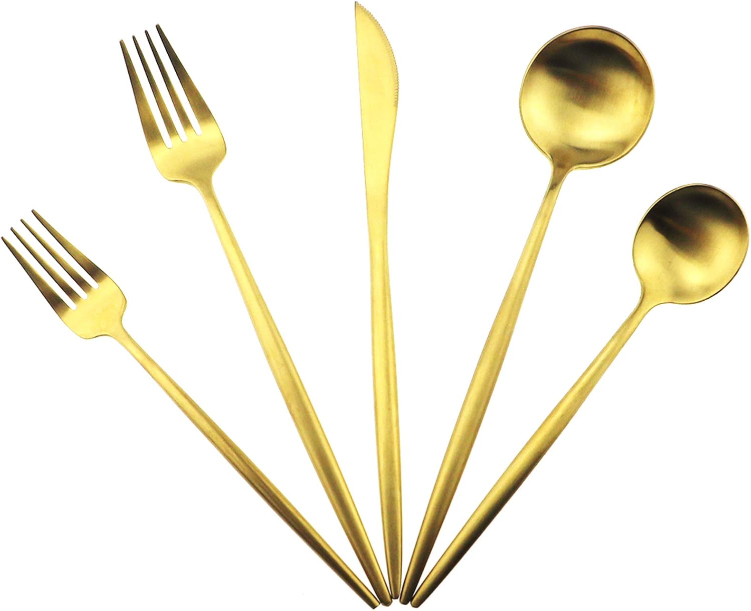 Gugrida 20-Piece 18/10 Stainless Steel Flatware Silverware, Luxury Dinnerware Set Travel Cutlery Tableware Include Knife Fork Spoon Service for 4,Healthy & Eco-Friendly Dishwasher Safe (Gold Matte)