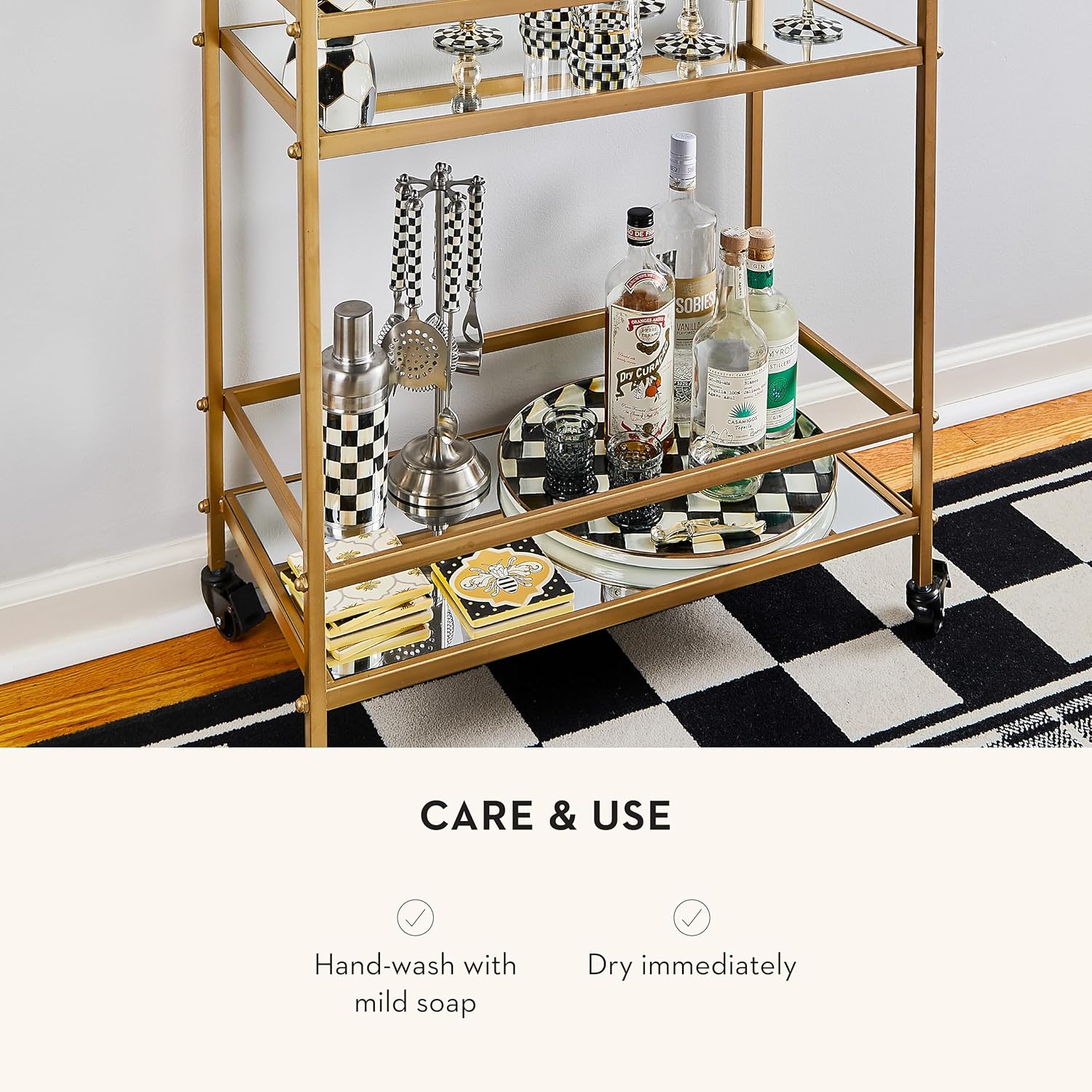 • ELEGANT SERVING ESSENTIAL: Serve anything in style with the Courtly Check round decorative tray, featuring a classic jewel-toned palette woven by an artisan’s brush through glossy hand-painted black-and-white checks on a sturdy steel base.