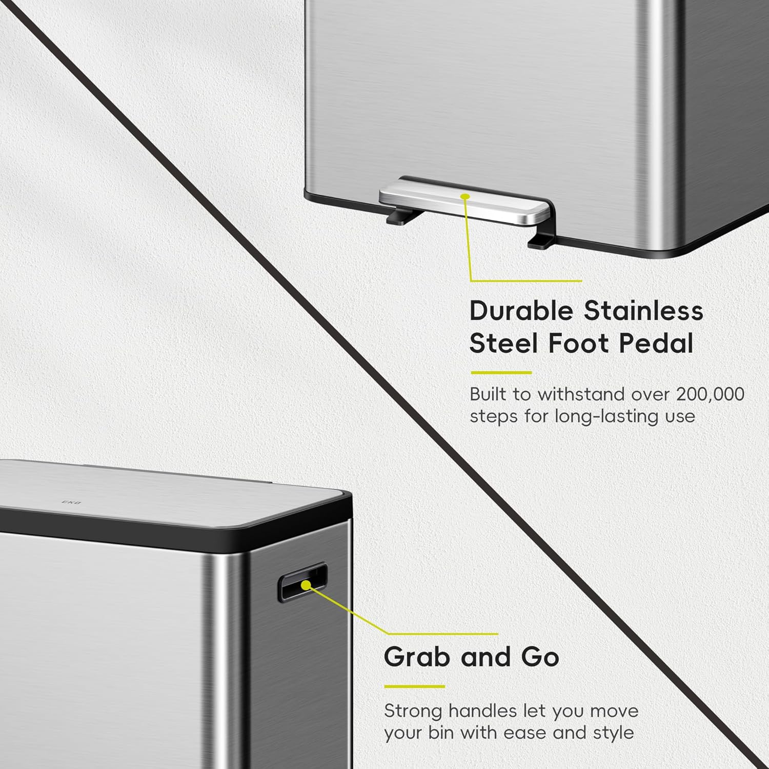 EKO EcoCasa II 36L+24L Dual Trash Can with Recycle Bin, Stainless Steel Garbage Can with Lid, Deodorizer Compartment, Odor-Proof and Fingerprint Resistant