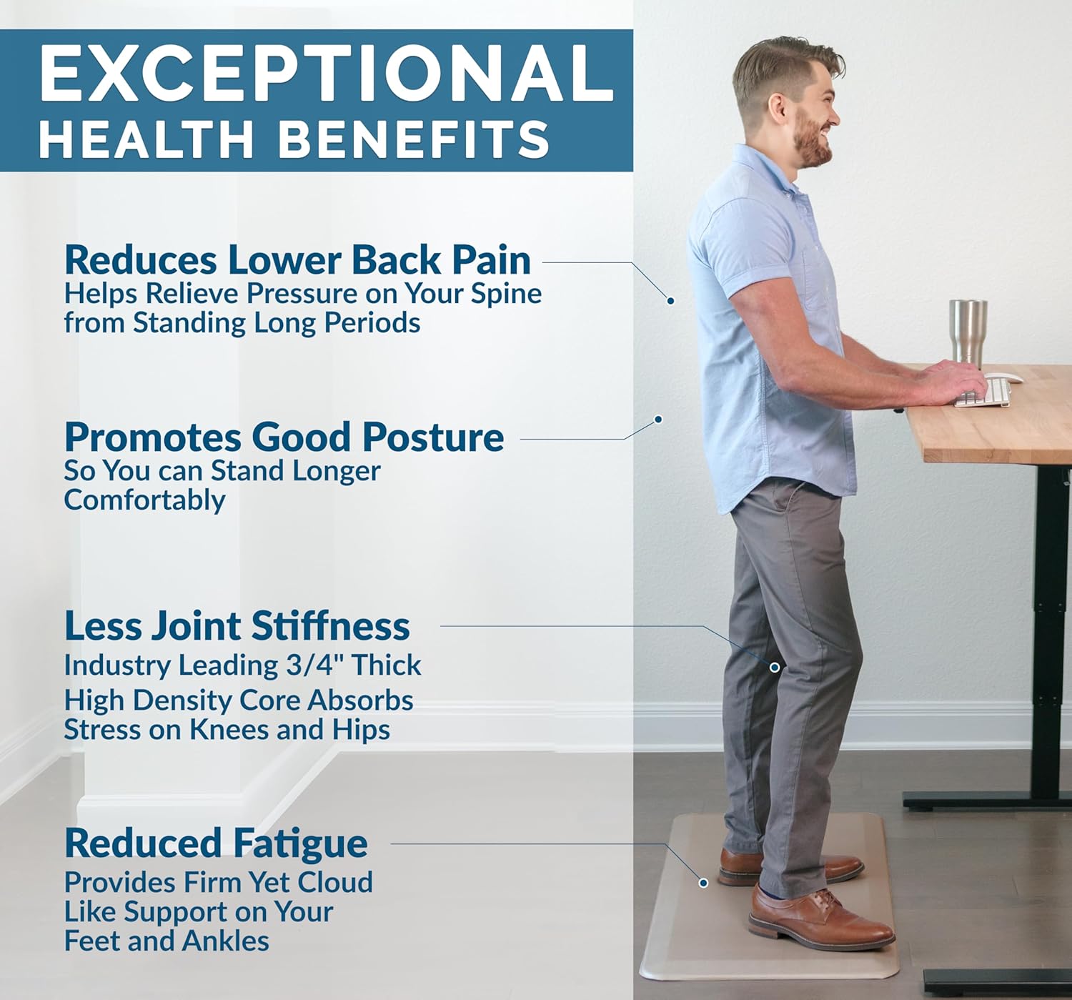 • Easy to Clean and Maintain: Simply wipe down the standing desk mat or anti-fatigue kitchen mat with a damp cloth for quick and easy maintenance, keeping your space clean and comfortable.