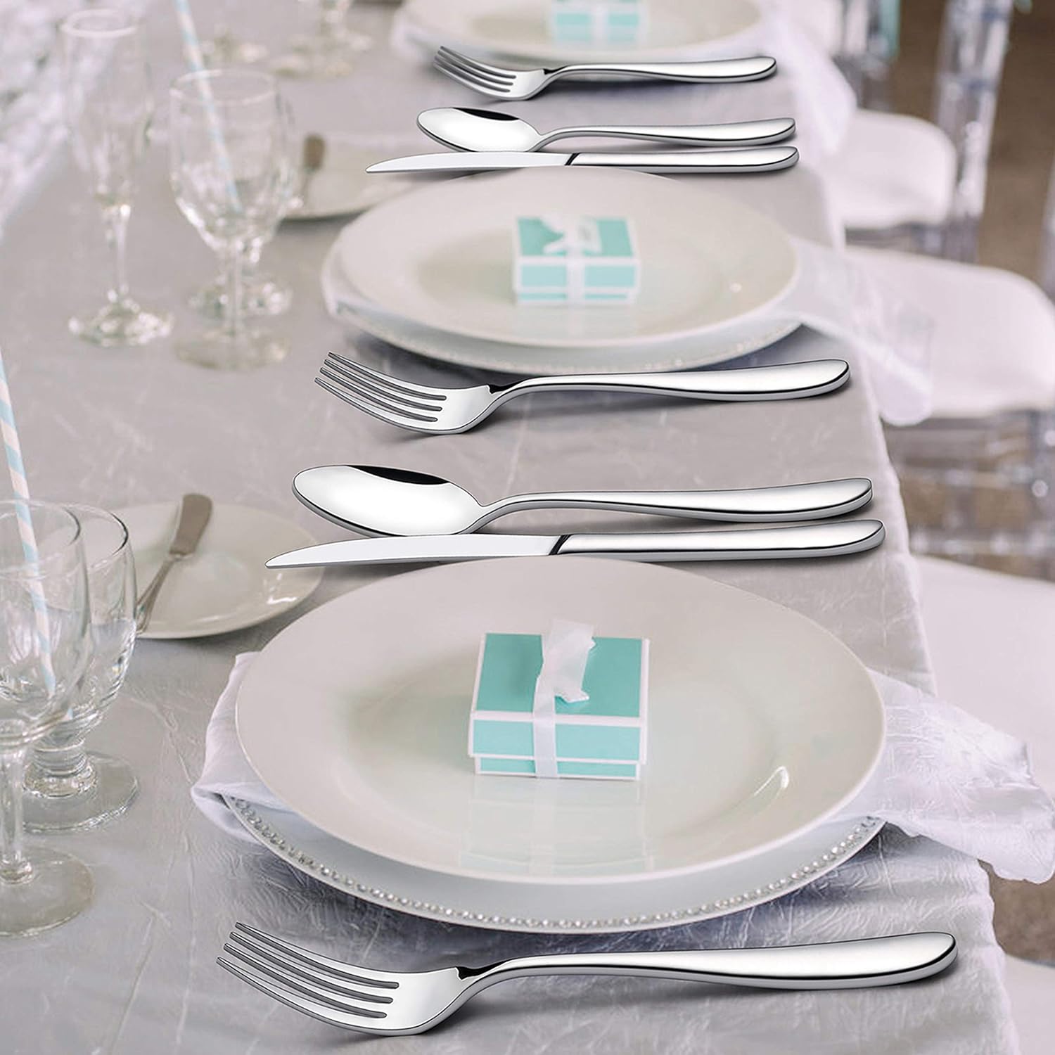 • Elegant silverware, highly mirror polish make these eating utensils always keep shiny, elegantly shaped with smooth edges, modern silverware makes dining all the better