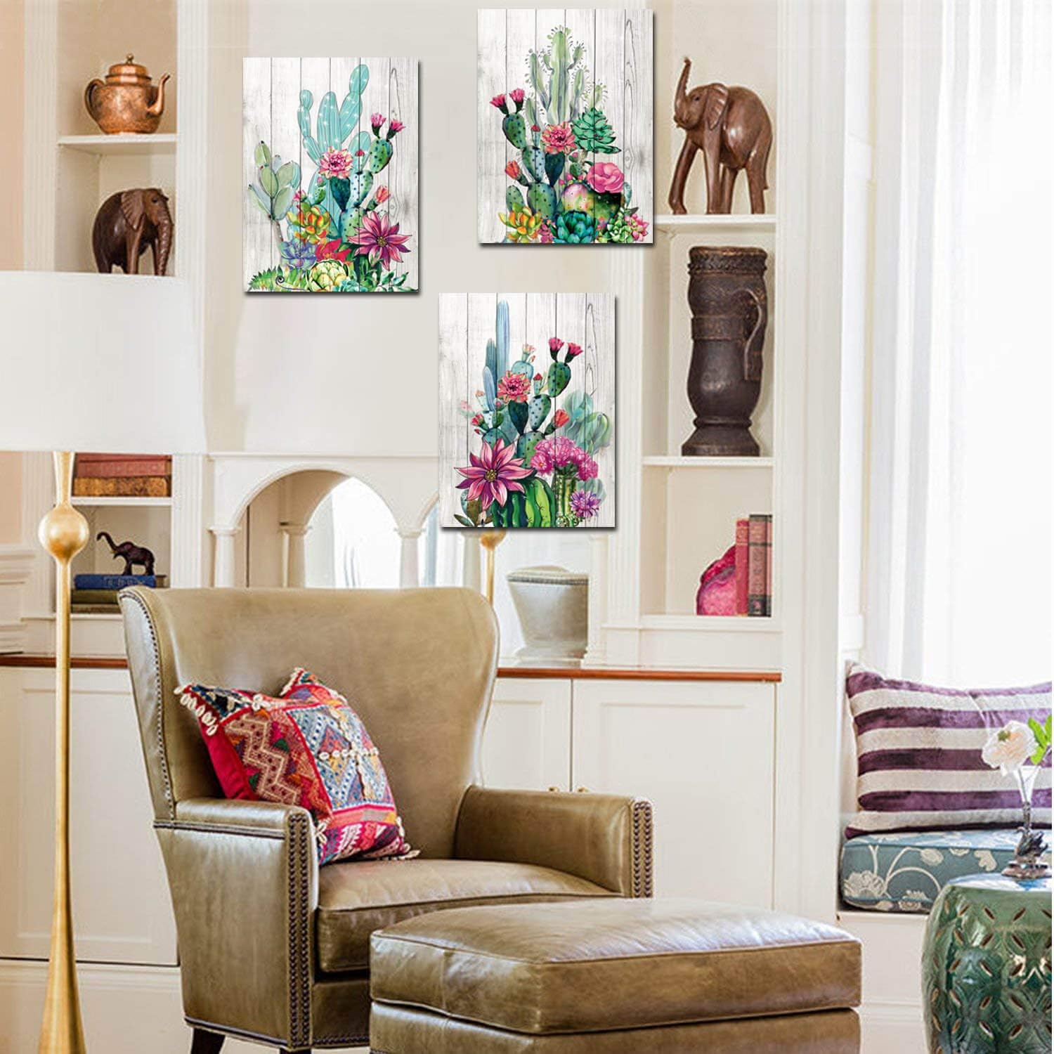 3 Piece Framed Wall Art Watercolor Tropical Plant Desert Cactus Canvas Print for Bedroom Bathroom Spiny Flower Artwork Home Office Wall Decoration 16x24 3 panels Decor