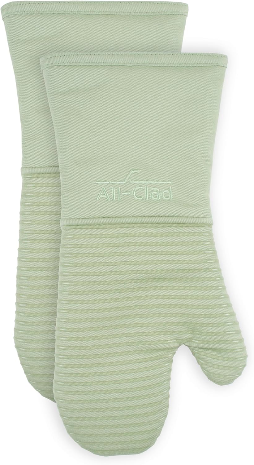 All-Clad Silicone Oven Mitts: Heat Resistant up to 500 Degrees - 100% Cotton & Silicone, 14"x7" Oven Mitt for Kitchen and Barbeque, 2-Pack, Fennel